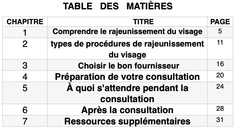 Livre électronique de pré-consultation : Comprendre la liposuccion, Options de remodelage corporel, Préparation de votre consultation, Risques et complications, Soins postopératoires, Changements de mode de vie après la chirurgie, Ressources supplémentaires et groupes de soutien.